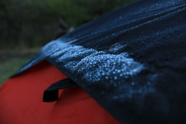 Утром проснувшись, открываю палатку, а на тенте корка льда. Теперь ясно, почему было так холодно.